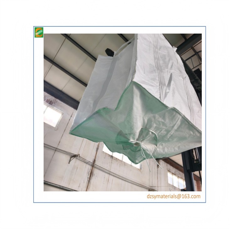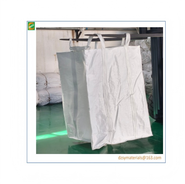 The four-ring wide-opening flat-bottomed square-bottomed bottom-loading ton bag is mainly used for industrial transportation and storage. It features high load-bearing capacity, wear resistance, and wide opening. It is commonly seen in scenarios such as sludge, industrial salt, and building materials.